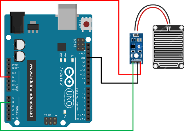Berikut ini adalah Schematics Diagram dari Sensor Hujan FC-37 Menggunakan Arduino Uno - Mode Analog :